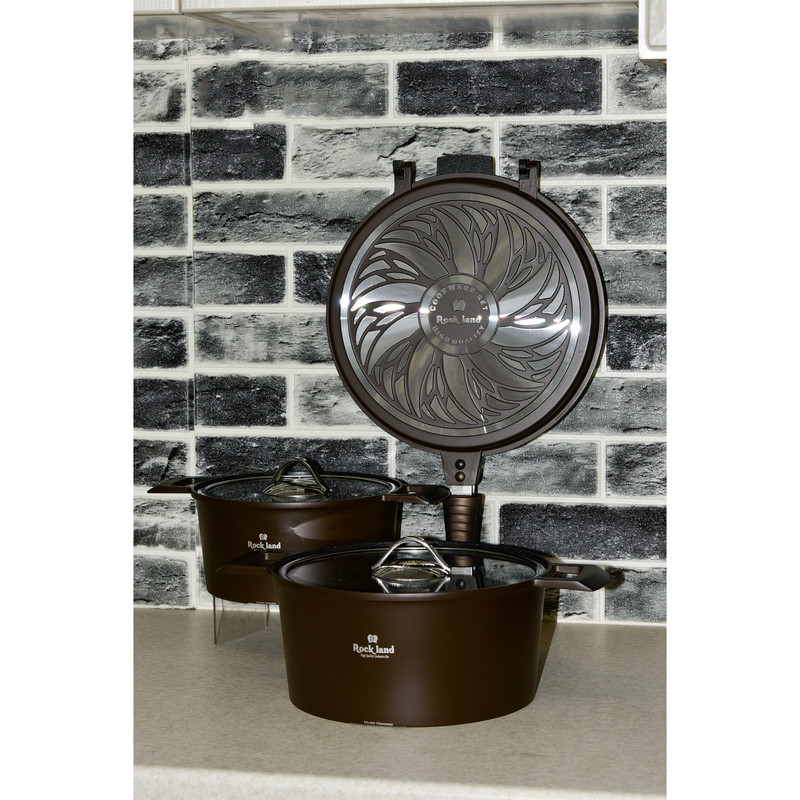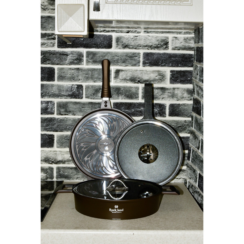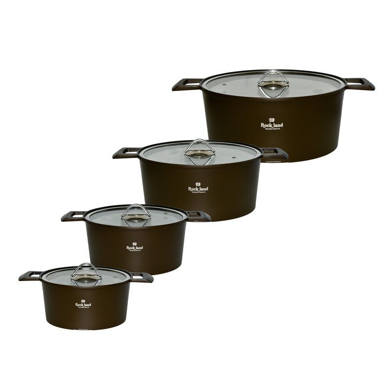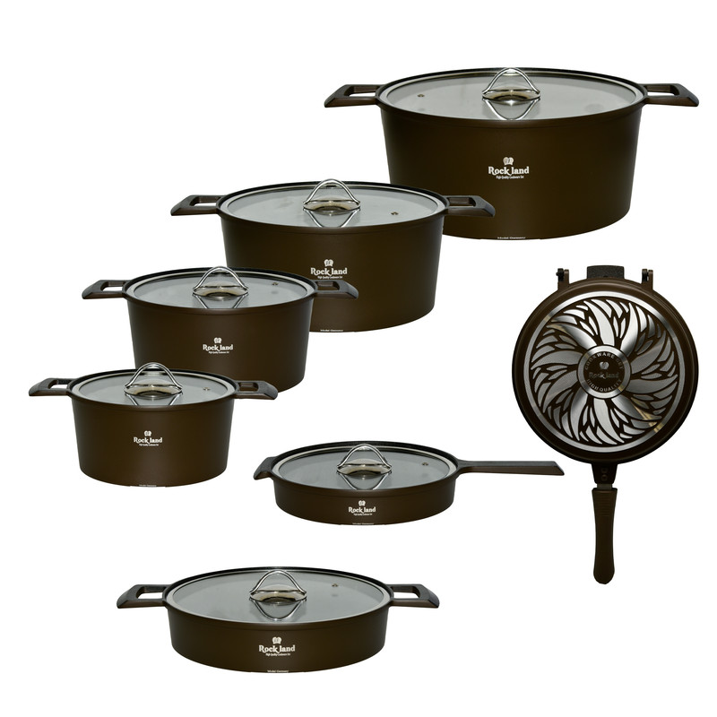 سرویس قابلمه راکلند یکی از جدیدترین، شیک ترین و باکیفیت ترین قابلمه های موجود در بازار می باشد. بدنه این سرویس از چدن مقاوم با پوشش داخلی گرانیت ضدخش می باشد. این قابلمه دارای 15پارچه کاملا کاربردی و مصرفی می باشد که نیاز هر آشپزخانه ای می باشد که برای هر تعداد میهمان مناسب است. در ادامه می توانید ترکیبات سرویس را با جزئیات مشاهده کنید. این سرویس شامل : دارای 4 قابلمه به سایزهای 20، 24، 28 و 32 با درب شیشه ای تابه دودسته سایز 28 با درب شیشه ای تابه تک دسته سایز 24 با درب شیشه ای تابه دو طرفه رژیمی سایز 32