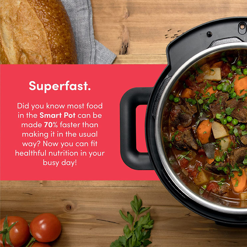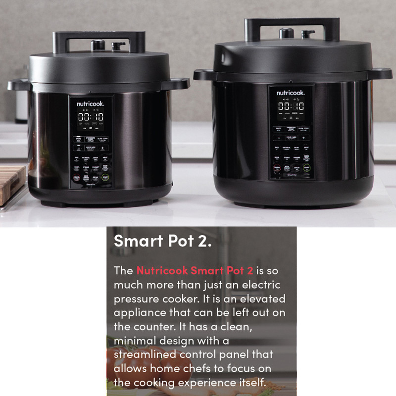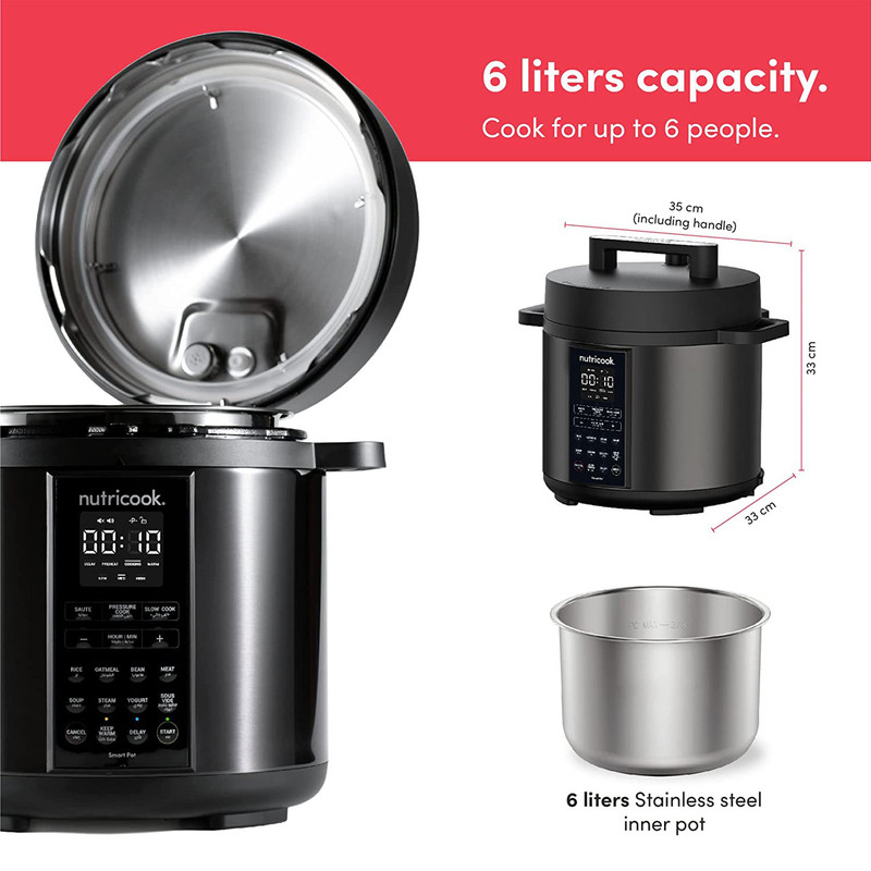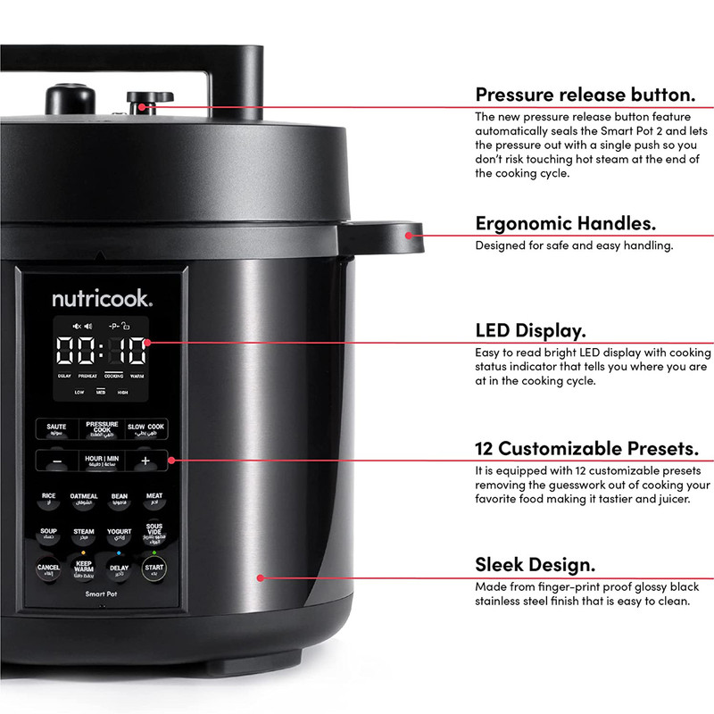 Smart Pot 2 چیزی فراتر از یک زودپز برقی است. این ابرقهرمان آشپزخانه شما است که آشپزی را آسان تر و سریعتر از همیشه می کند. این جای چندین وسیله آشپزخانه با عملکردهای مختلف از جمله پخت و پز تحت فشار ، تفت دهنده ، آرام پز ، پخت و پز برنج ، بخارپز ، تهیه ماست و گرم شدن غذا و .... است. استفاده از آن بسیار ساده است و فضای زیادی را روی کانتر آشپزخانه شما اشغال نمی کند. زودپز هوشمند نوتریکوک دارای ویژگی های جدیدی است که برای سهولت شما طراحی شده اند. صفحه کنترل ساده با نمایشگر LED روشن و نشانگر وضعیت پخت و پز به آشپزهای خانگی اجازه می دهد تا خودشان روی تجربه آشپزی تمرکز کنند. همچنین این زودپز از برنامه آشپزی هوشمند Sous Vide برخوردار است.