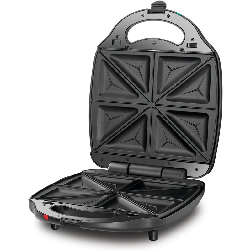 صفحات گریل تا زاویه 180 درجه از هم باز می شوند که منطقه پخت و پز را بزرگتر می کند، گویی روی باربیکیو مواد غذایی را طبخ می نمایید. صفحه ساندویچ ساز از 4 مربع یا 8 مثلث تشکیل شده و در هر بار می توان 4 نان تست و یا 8 ساندویچ سه گوش را داشته باشید.