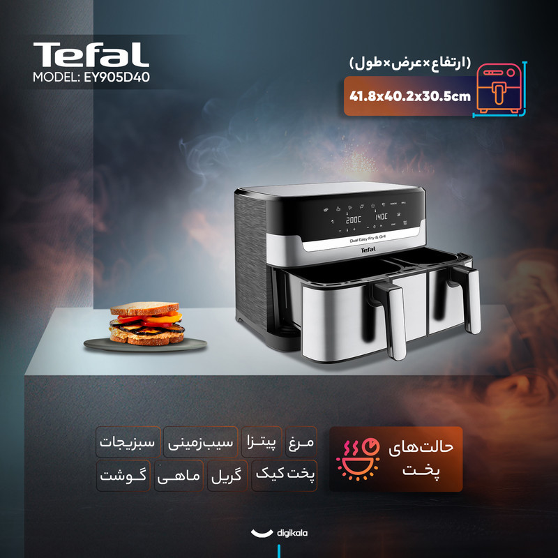 بررسی سرخکن بدون روغن ۸.۳ لیتری تفال مدل EY905D40: انقلاب آشپزی دوگانه، طعمی از آینده در آشپزخانه شما