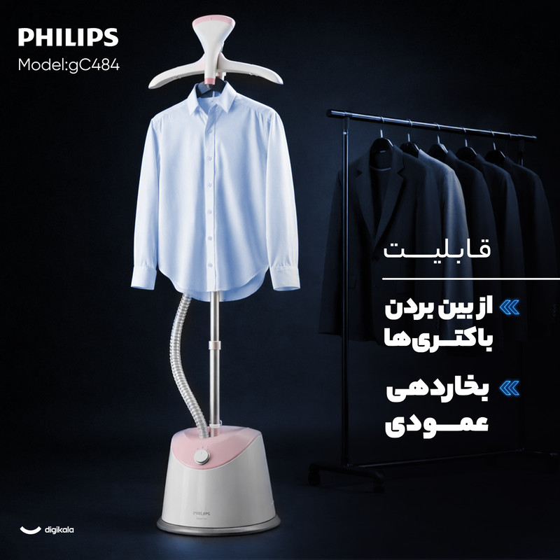 بخارگر ۱۸۰۰ وات فیلیپس مدل GC484 یک دستگاه حرفهای برای اتوکشی سریع و مؤثر انواع پارچههاست. این محصول با توان مصرفی ۱۸۰۰ وات و کفه سرامیکی، گرمایش یکنواخت و انتقال حرارت بهینه را تضمین میکند. مخزن آب ۱۴۰۰ میلیلیتری آن امکان بخاردهی پیوسته تا ۳۵ گرم در دقیقه را فراهم میسازد و با قابلیت پرکردن آب در حین استفاده، وقفه در کار را به حداقل میرساند. سیستم بخاردهی عمودی به کاربر اجازه میدهد بدون نیاز به میز اتو، لباسهای آویزان را صاف کند. تنظیم میزان بخاردهی و اسپری آب، انعطاف لازم برای پارچههای ظریف تا ضخیم را ایجاد میکند. عملکرد ضدچکه و امکان استفاده از آب شهری، نگهداری دستگاه را آسان کرده و از تشکیل رسوب جلوگیری میکند. از نظر ایمنی، این بخارگر مجهز به سیستم خاموشی خودکار در صورت گرمایش بیشازحد و محافظت از پارچه در برابر سوختگی است. پایه تلسکوپی با قابلیت تنظیم ارتفاع، قرارگیری پایدار روی سطوح مختلف را ممکن میسازد و طراحی ارگونومیک آن با وزن ۳۴۰۰ گرم، مانورپذیری مناسبی در طول استفاده طولانی فراهم میآورد. ویژگی تمیزکاری خودکار (Self Clean) بهطور دورهای رسوبات معدنی را از سیستم بخار خارج میکند و عمر مفید دستگاه را افزایش میدهد. بدنه ترکیبی از پلاستیک مقاوم و آلومینیوم، دوام بالا و عایقبندی حرارتی مناسب را تضمین میکند. این دستگاه تنها در ۱۲۰ ثانیه به دمای عملیاتی میرسد و با سیم ۱.۸ متری، محدوده حرکتی کافی برای اتوکشی در فضای معمول خانه را ارائه میدهد. بخارگر فیلیپس GC484 با قابلیت از بین بردن باکتریها توسط بخار داغ، علاوه بر صاف کردن لباس، به بهداشت منسوجات نیز کمک میکند. این محصول برای مصارف خانگی و نیمهحرفهای، بهویژه برای کسانی که حجم بالایی از لباسهای متنوع را اتو میکنند، گزینهای ایدهآل و مقرونبهصرفه محسوب میشود.