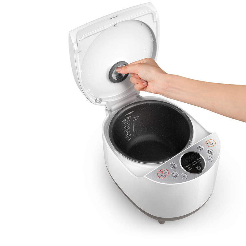 کنترل پنل لمسی دستگاه یکی دیگر از نقاط قوت آن به حساب میآید. این پنل علاوه بر زیبایی ظاهری، استفاده آسانی دارد و اطلاعاتی نظیر برنامه پخت و زمان باقیمانده را روی صفحهنمایش نمایش میدهد. از نظر ایمنی نیز فیلیپس خاموشی خودکار را برای این مدل در نظر گرفته تا در صورت اتمام پخت یا بروز شرایط غیرعادی، دستگاه بهطور خودکار متوقف شود.یکی از ویژگیهای کاربردی دیگر در این مدل، عملکرد گرم نگه داشتن غذا و گرم کردن دوباره است. این قابلیت باعث میشود غذا تا مدتها پس از پخت طعم و کیفیت اولیه خود را حفظ کند و نیازی به گرم کردن مکرر روی اجاق نباشد.