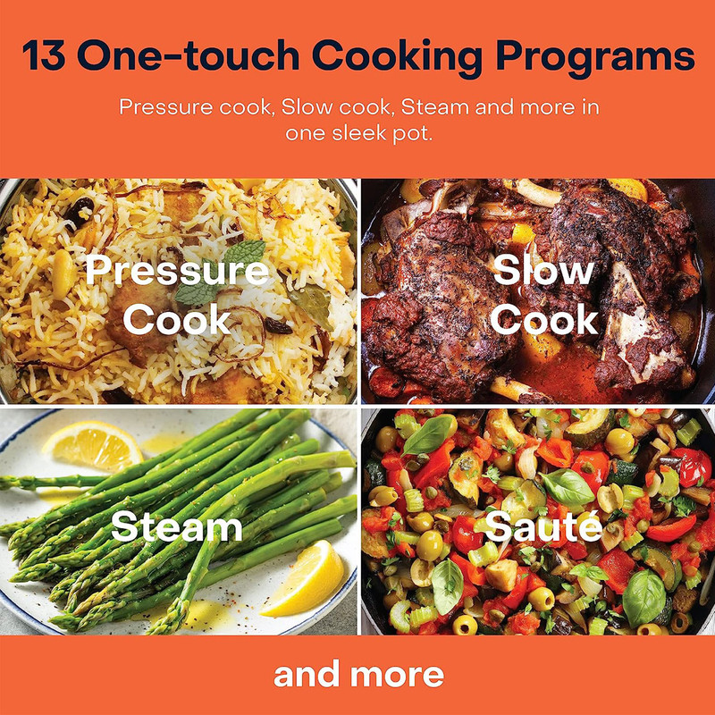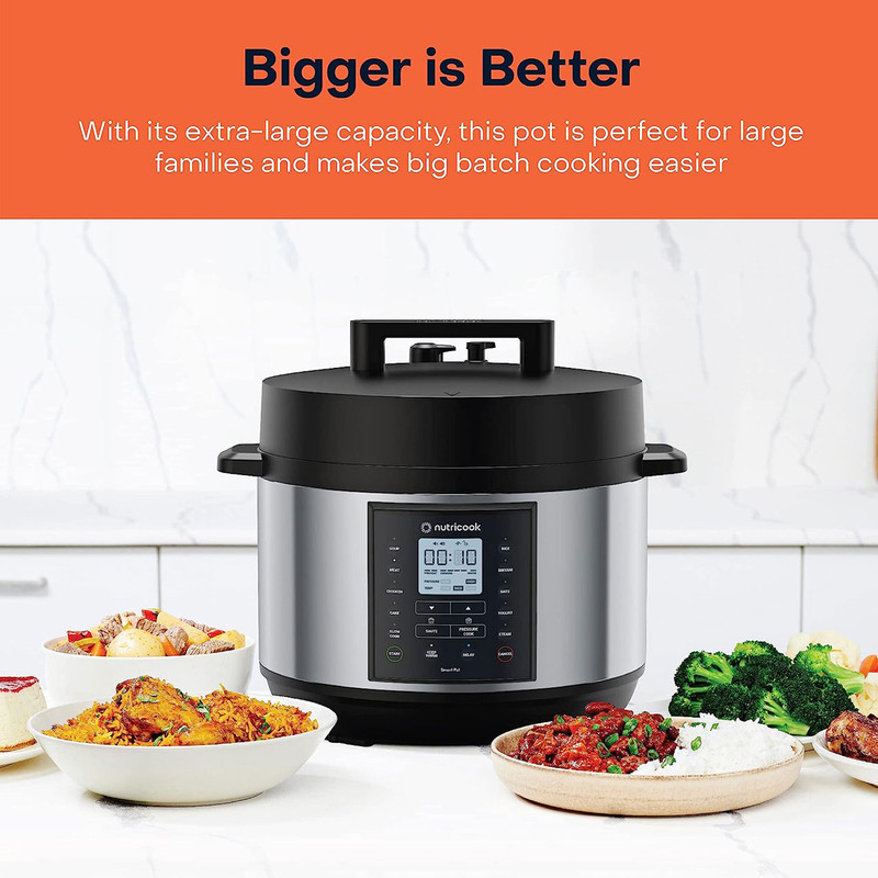 بزرگتر بهتر است - ظرفیت بزرگتر، فضای بیشتر، چیزهای بیشتری که برای تهیه غذاهای خوشمزه مورد علاقه خود در دسته های بزرگ نیاز دارید 9 در 1 - Smart Pot 2 Plus 10L یک زودپز، آرام پز، پلوپز، بخارپز، ماهیتابه (تفت دهی)، ماست ساز، سوپ ساز، کیک ساز و گرم کننده غذا است – همه در یک دستگاه درب هوشمند - مجهز به دکمه کاهش فشار که به طور خودکار درب را در هنگام پخت و پز تحت فشار میبندد و با یک لمس به طور ایمن فشار را آزاد میکند. صفحه نمایش پاک - وضعیت پخت غذای خود را روی صفحه نمایش LCD خوانا با نشانگرهای وضعیت پخت مشاهده کنید. آشپزی با یک لمس - 13 تنظیمات با یک لمس برای غذای مورد علاقه شما ساخته شده از متریال سالم و ایمن - قابلمه استیل ضد زنگ 304 قابل شستشو در ماشین ظرفشویی بدون پوشش شیمیایی ساخته شده است.