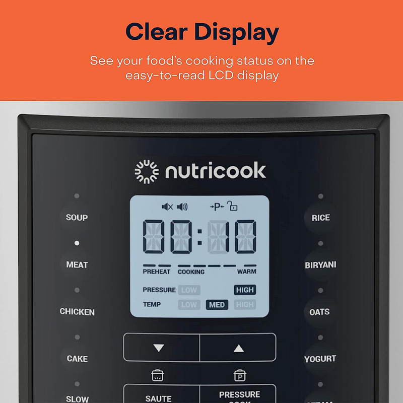 | سایر مشخصات | برنامه های پیش فرض : ( Soup , Meat , Chicken , Cake , Slow Cook , Rice , Biryani , Oats , Yogurt , Steam , Saute , Pressure Cook , Delay , Keep Warm) / ( سوپ , گوشت , مرغ , کیک , آرام پز , برنج , بریانی , جو دوسر , ماست , بخارپز , تفت دادن , زودپز , پخت با تاخیر , گرم نگه دارنده ) / دارای برنامه Delay پخت با تاخیر |