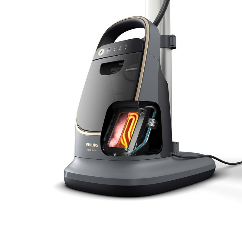 بخارگر ۲۲۰۰ وات فیلیپس مدل AIS8540 یک دستگاه قدرتمند و حرفهای برای اتوکشی سریع و ایمن انواع پارچههاست که عملکردی باکیفیت را در کنار طراحی هوشمند ارائه میدهد. توان بالای ۲۲۰۰ وات موجب میشود بخارگر در مدت کوتاه ۹۰ ثانیه آمادهی استفاده شود و بتواند با فشار بخار ۶ بار، چینوچروکهای عمیق را نیز از بین ببرد. بخاردهی پیوسته ۹۰ گرم در دقیقه و بخاردهی لحظهای تا ۳۰۰ گرم در دقیقه، امکان اتوکشی سریع لباسهای ضخیم یا حجیم مانند کت و پرده را فراهم میکند. طراحی پیشرفتهی این مدل شامل مخزن آب ۱۲۰۰ میلیلیتری قابل جدا شدن است که با ظرفیت مناسب خود، استفادهی طولانیمدت را بدون نیاز به پرکردن مکرر ممکن میسازد. قابلیت استفاده از آب شهری و وجود سیستم ضدرسوب نیز از ایجاد رسوبات جلوگیری کرده و عمر مفید دستگاه را افزایش میدهد. ویژگیهایی مانند تنظیم میزان بخار و تنظیم دما به کاربر اجازه میدهد بخاردهی را متناسب با نوع پارچه تنظیم کند و نتایج دقیقی بهدست آورد. در بخش طراحی و ارگونومی، دستگاه دارای پایهای با قابلیت تنظیم ارتفاع است که کاربری راحت را برای افراد با قدهای مختلف تضمین میکند. همچنین قابلیت تغییر زاویه سر بخارگر، دسترسی آسان به نواحی دشوار لباس یا پرده را ممکن میسازد. وزن ۱۱۹۰۰ گرم و بدنهای کاملاً پایدار باعث میشود بخارگر در استفادههای طولانی، ثابت و ایمن باقی بماند. از نظر کاربرد، این مدل برای طیف وسیعی از پارچهها از جین و کتان گرفته تا ابریشم، حریر، پشمی و پلیاستر مناسب است و بدون آسیبرسانی به الیاف، با بخار داغ باکتریها و بوی نامطبوع را از بین میبرد. بخاردهی عمودی نیز اتوکشی لباسهای آویزان و پردهها را سادهتر کرده است. در بخش ایمنی، فناوری محافظت از پارچه در برابر سوختگی و خاموشی خودکار هنگام داغشدن بیش از حد از ویژگیهای کلیدی آن هستند. مجموعهای از امکانات پیشرفته، طراحی دقیق و قدرت بخار چشمگیر، بخارگر فیلیپس AIS8540 را به گزینهای ممتاز برای افرادی تبدیل کرده که به اتوکشی حرفهای، ایمن و سریع اهمیت میدهند.