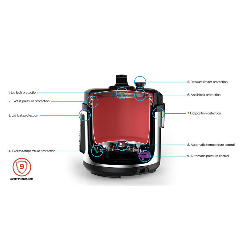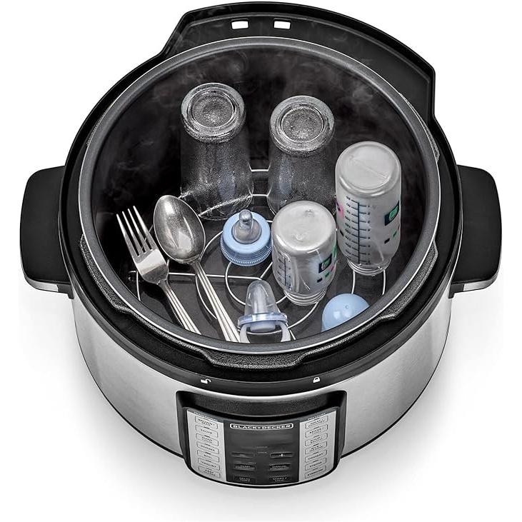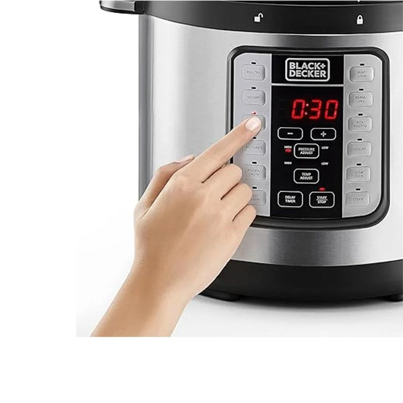 زودپز برقی بلک اند دکر، توان مصرفی ۱۰۰۰ وات، قابلیت زمان دهی جهت شروع پخت با تاخیر، تا ۸۰ درصد زمان پخت کوتاه تر و حفظ ویتامین های مواد غذایی، سیستم گرم نگه دارنده اتومات، پوشش دیگ داخلی کاملا نچسب و عاری از هرگونه مواد شیمیایی (PFOA FREE) و مناسب جهت پخت برنج