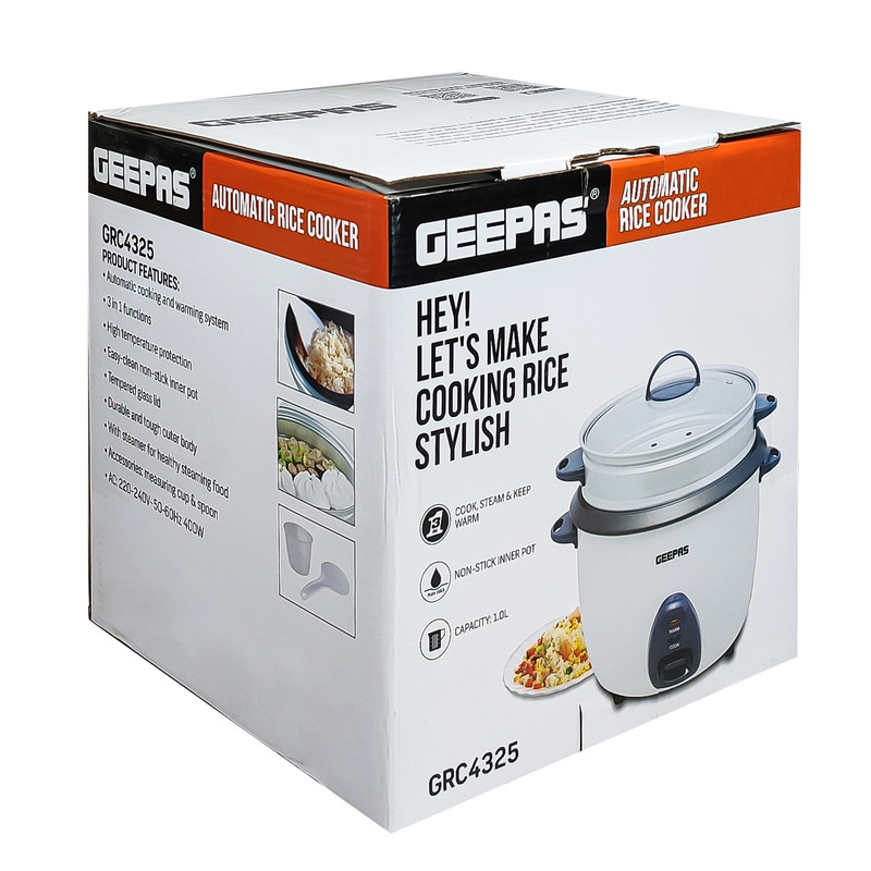 برند جی پاس با دارا بودن بیش از 1500 کالا در زمینه لوازم خانگی یکی از برند های معتبر در آسیا و اروپا محسوب می شود .آرام پز ،پلوپز و بخار پز جیپاس GEEPAS مدل GRC4325 یکی از پلوپزهای این شرکت می باشد که علاوه بر دارا بودن امکان پلوپز و طبخ غذاهای متنوع ، با یک قطعه اضافی که بر روی آن قرار می گیرد امکان بخار پز کردن غذا را به منظور استفاده در شرایط رژیمی و استفاده کمتر از روغن و بی خطر و ضرر بودن غذا را نیز دارد . همچنین با امکان گرم نگه داشتن غذا بعد از اتمام پختن این دستگاه را می توان 3 کاره نامید. دستگاه در برابر گرمای بیش از حد بدلیل قرار ندادن غذا و مایعات داخل درداخل آن ، حفاظت شده است و بطور اتوماتیک خاموش می شود .توان مصرفی دستگاه 400 وات است . ظرف داخل دستگاه نچسب بوده و ظرفیت آن 1 لیتر است که برای تهیه غذا برای 4 نفر مناسب است . دستگاه از سه شاخه مجهز به فیوز جهت حفاظت از خود دستگاه و شبکه برق خانگی در برابر اتصال کوتاه مجهز است .