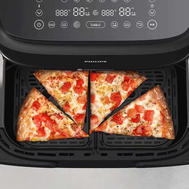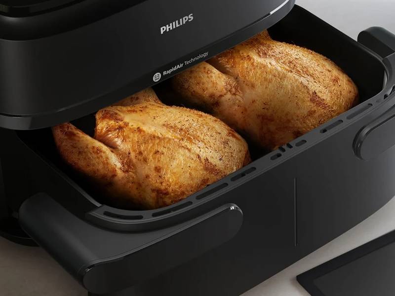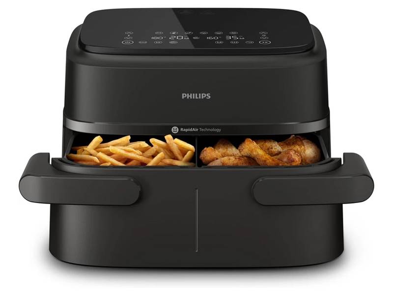 فیلیپس همیشه در طراحی محصولات خود به ترکیب راحتی و امنیت اهمیت میدهد. در NA150/09، ویژگیهایی مانند کنترل دیجیتال جداگانهی دما و زمان برای هر محفظه باعث میشود بتوانید بهصورت مستقل دو غذای متفاوت را با تنظیمات دقیق بپزید. این سطح از انعطاف، دستگاه را به انتخابی ایدهآل برای خانوادههایی تبدیل میکند که همزمان به پخت چند نوع غذا نیاز دارند. افزون بر آن، سیستم قطع خودکار هنگام پایان پخت یا در صورت افزایش بیش از حد دما، ایمنی دستگاه و مواد غذایی را تضمین میکند. وجود محافظ گرمای بیش از حد نیز مانع از ایجاد خطر در اثر کارکرد طولانی میشود. به این ترتیب کاربر میتواند با آرامش ذهنی، روند پخت را به دستگاه بسپارد. در پایان پخت هر غذای لذیذ، مرحلهی تمیزکاری اغلب بخش کمتر دلپذیر ماجراست. اما فیلیپس برای این موضوع نیز راهحلی کارآمد پیشبینی کرده است. تمامی قطعات داخلی قابل جدا شدن، از جمله سبد و محفظهی پخت، دارای روکش نچسب بوده و قابل شستوشو در ماشین ظرفشویی هستند. سطح بیرونی نیز با یک دستمال مرطوب بهسادگی تمیز میشود و فناوری گردش هوای سرد در بخش بدنه، مانع از داغ شدن بیش از حد سطح خارجی میگردد. طراحی محفظهی داخلی به شکلی انجام شده که در صورت نیاز میتوان آن را به دو بخش مجزا تقسیم کرد. این ویژگی قابلیت پخت همزمان دو نوع غذا بدون انتقال بو یا طعم را فراهم میکند و میزان انعطافپذیری دستگاه را چند برابر میسازد.