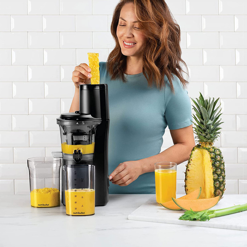 فوق العاده کم صدا / موتور 56 دور در دقیقه و گشتاور بالا، سختترین میوهها و سبزیجات را بدون دردسر میشکند و حداکثر آب میوه را میگیرد / حالت چرخش معکوس reverse دارد