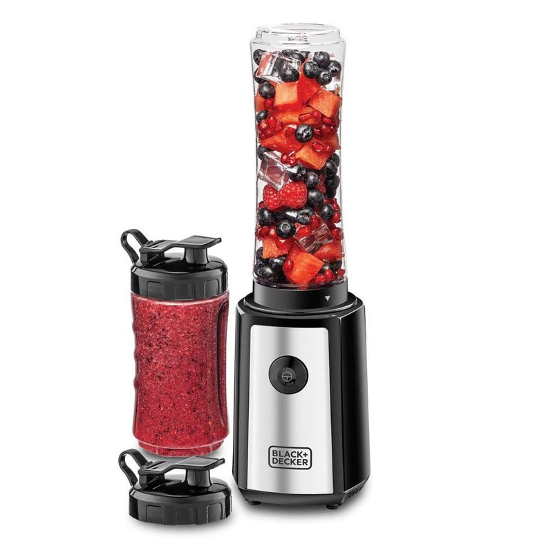 | امکانات و قابلیتها | مخلوط کن/اسموتی ساز ورزشی بلک اند دکر، 300 وات، 6 تکه با بطری ورزشی 500 میلی لیتری و 300 میلی لیتری ، ساخت و میکس انواع اسموتی،انواع معجون،انواع نوشیدنی های یخی و غیره... ، 2 مدل تنظیم کم و زیاد، جنس تیغه ها فولاد ضد زنگ، قابلیت شستشو در ماشین ظرفشویی |
