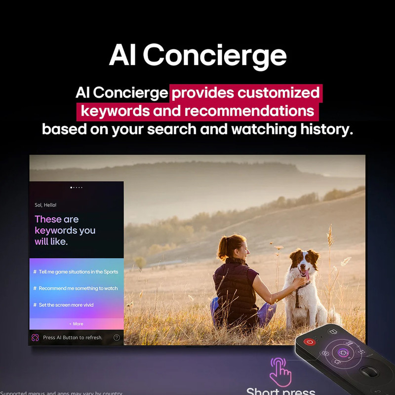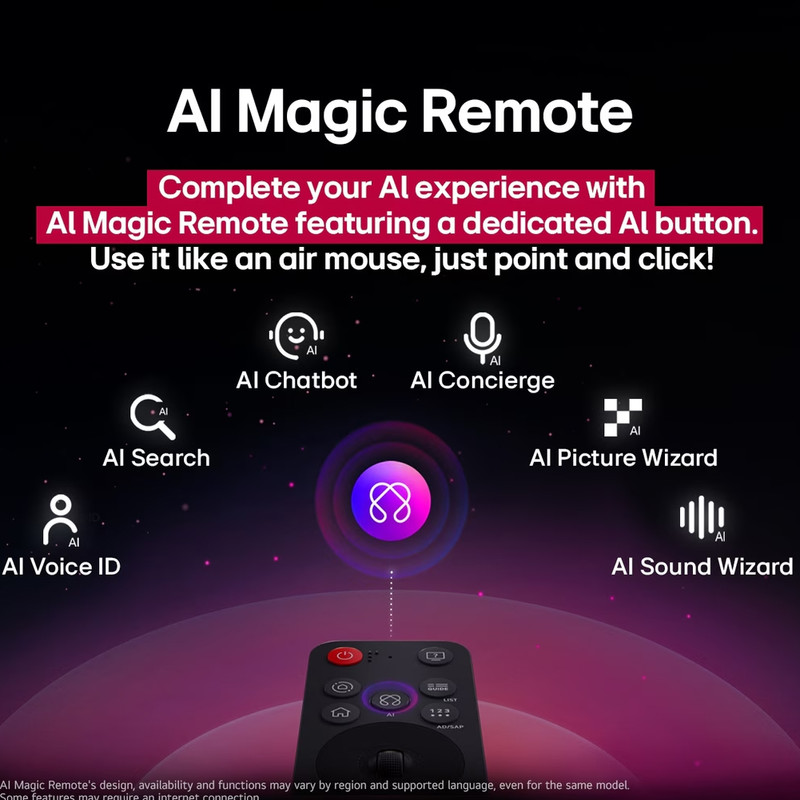 خب رسیدیم به مهم ترین تغییر در تلویزیون های 2025 ال جی یعنی ریموت کنترل های آنها که چند سالی است ظاهر و عملکرد یکسان خود را در تلویزیون های ال جی حفظ کرده بودند اما امسال ال جی قواعد بازی را تغییر داد و با یک ریموت کنترل جادویی تازه نفس وارد رقابت شد. ال جی از ریموت کنترل جادویی، هوشمند و بلوتوثی جدید خود که حالا آن را AI Magic Remote نامیده و با مدل MR25GA معرفی کرده، در این تلویزیون و اکثر تلویزیون های 2025 خود استفاده نموده است. عبارت AI به کار رفته در این نام گذاری جدید، اشاره به هوش مصنوعی و دکمه AI این ریموت کنترل دارد که به جای دکمه میکروفون ایفای نقش می کند؛ در ادامه به صورت مفصل در مورد دکمه AI این ریموت کنترل توضیح خواهیم داد. ریموت کنترل MR25GA این تلویزیون از نظر ظاهری و عملکرد با ریموت کنترل های گذشته ال جی متفاوت است. همانطور که از مدل این ریموت کنترل نیز مشخص است، فاقد NFC می باشد و این یعنی خبری از قابلیت Magic Tap نیز در آن نیست. این ریموت کنترل حالا ظاهری شبیه به ریموت کنترل های سامسونگ و سونی پیدا کرده اما اصالت خود را حفظ نموده است. طراحی جدید این ریموت کنترل باعث شده تا ابعاد آن به نسبت جمع و جورتر شده و دارای گوشه های تیزتر باشد و پشت آن نیز دارای برجستگی های کوچکی است که باعث می شود از دست شما سر نخورد. همینطور جنس بدنه این ریموت کنترل بهتر شده و برخلاف مدل های قدیمی آن، مات است و اثر انگشت و رد چربی دست کمتری به خود جذب می کند و از همه مهم تر در مقابل خط و خش مقاوم تر است. ریموت کنترل جدید ال جی برای کار نیاز به دو عدد باتری نیم قلمی دارد که ال جی یک جفت از آن را داخل جعبه تلویزیون قرار داده است. باتری کوچک تر و سبک تر در کنار طراحی جدید این ریموت کنترل باعث شده تا وزن کمتری نیز داشته باشد و نسبت به مدل های قدیمی تر، سبک تر و خوش دست تر باشد. ال جی در دکمه های این ریموت کنترل تغییرات اساسی ایجاد کرده است و دکمه های عددی آن را حذف نموده و به جای آنها یک دکمه قرار داده است که با فشردن آن کیبورد مجازی روی صفحه ظاهر شده و می توانید به اعداد دسترسی داشته باشید. همینطور به جای دکمه میکروفون، دکمه AI را قرار داده است اما این دکمه از نظر عملکرد کمی متفاوت است. با یک بار فشردن دکمه AI قابلیت AI Chatbot تلویزیون اجرا می شود و شما می توانید از آن برای راهنمایی در مورد برخی مشکلات رایج و همینطور پیشنهاد محتوای مورد علاقه خود استفاده کنید. اگر به خاطر داشته باشید، ال جی قابلیت مشابهی را سال گذشته به عنوان قابلیت Chatbot معرفی کرده بود و حالا آن را به قابلیت AI Chatbot ارتقا داده است. همینطور اگر دکمه AI را فشرده و نگه دارید، می توانید به کمک میکروفون داخلی ریموت کنترل، از قابلیت AI Search برای جستجوی صوتی محتوا و اجرای دستورات صوتی استفاده کنید. ال جی در این تلویزیون برای اولین بار از هوش مصنوعی مایکروسافت یعنی Microsoft Copilot نیز استفاده نموده است و شما می توانید در برخی جستجوهای صوتی خود از این هوش مصنوعی نیز استفاده کنید. همچنین برنامه Microsoft Copilot در فروشگاه برنامه ال جی نیز وجود دارد و می توانید با نصب آن روی تلویزیون از هوش مصنوعی مایکروسافت استفاده کنید. طبق تست های ما در کمال تعجب قابلیت AI Search در اکثر مواقع جملات و کلماتی که به عنوان دستور صوتی یا جستجوی صوتی دادیم را به درستی متوجه نمی شد و این موضوع کمی عجیب است چون در تلویزیون های قبلی ال جی اینطور نبود؛ این موضوع ممکن است مربوط به سیستم عامل این تلویزیون باشد و در آینده با آپدیت های بعدی مرتفع شود. در صورتی که شما در پروفایل شخصی خود مشغول تماشای تلویزیون باشید و یکی از اعضای خانواده شما ریموت کنترل را برداشته و دکمه AI را فشرده و نگه دارد و اقدام به صحبت کردن کند، تلویزیون با استفاده از قابلیت AI Voice ID صدای آن را تشخیص داده و به صورت اتوماتیک به پروفایل شخصی آن سوییچ می کند و اگر جستجوی صوتی انجام داده باشد نیز به کمک قابلیت AI Concierge محتوا یا نتیجه جستجو را با توجه به سوابق جستجوهای قبلی و موا